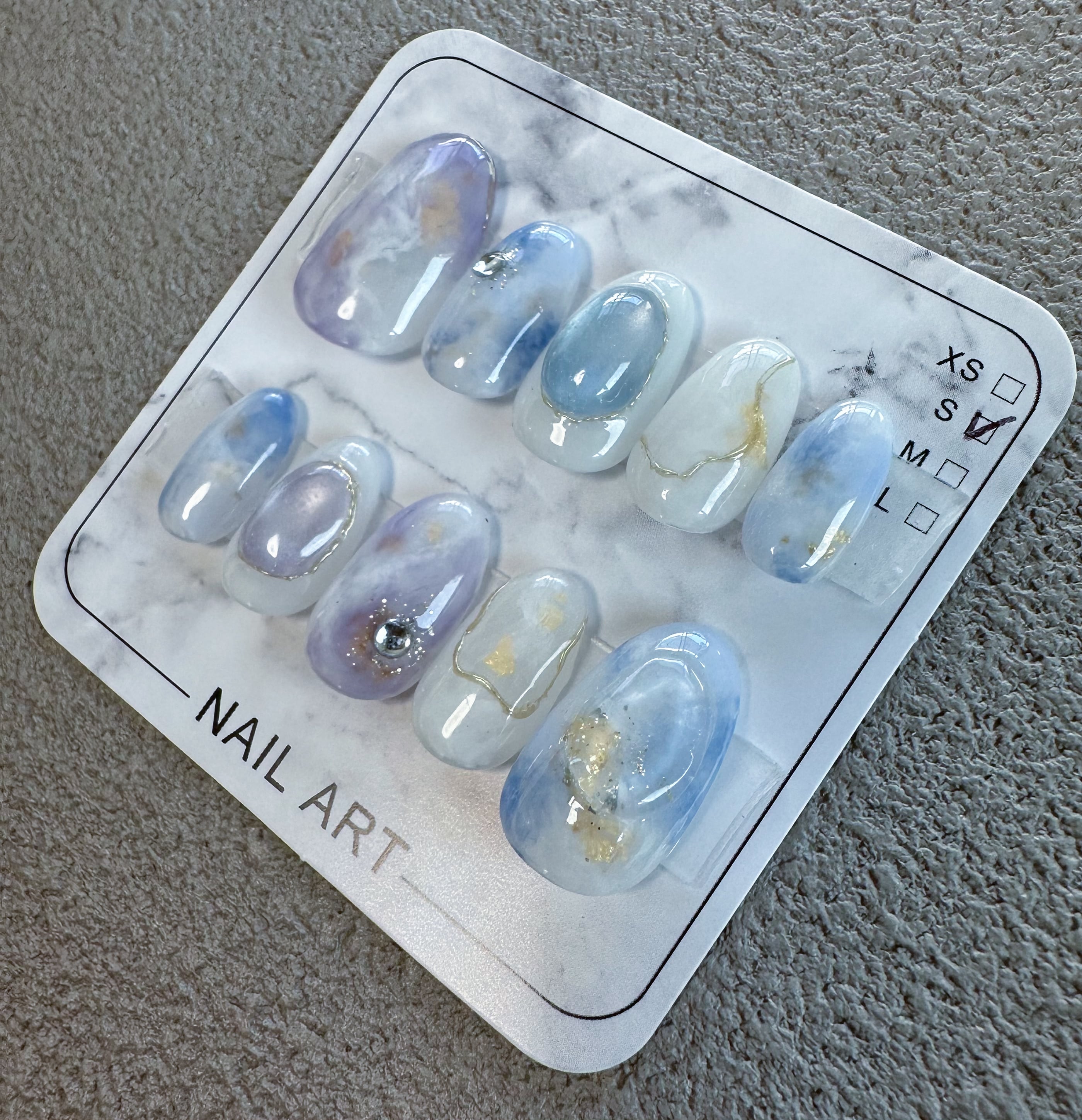 こちらのショップで販売しているネイルチップは、1つ1つ手作業で心を込めてお造りしております。