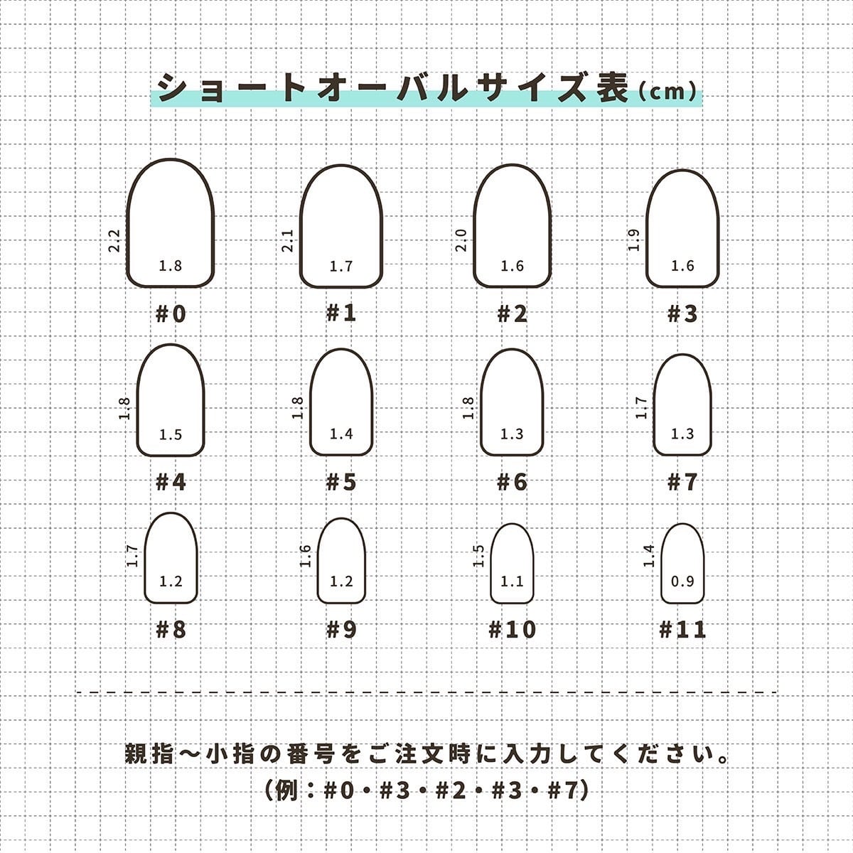 ①[ネイルチップサイズ表]からお爪に合うチップの大きさを測定していただき、S.M.Lサイズ(または特注サイズ)から選択。
