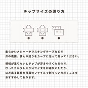 ①[ネイルチップサイズ表]からお爪に合うチップの大きさを測定していただき、S.M.Lサイズ(または特注サイズ)から選択。
