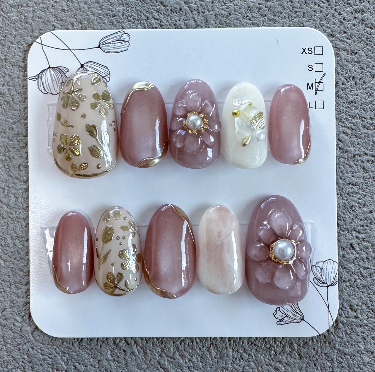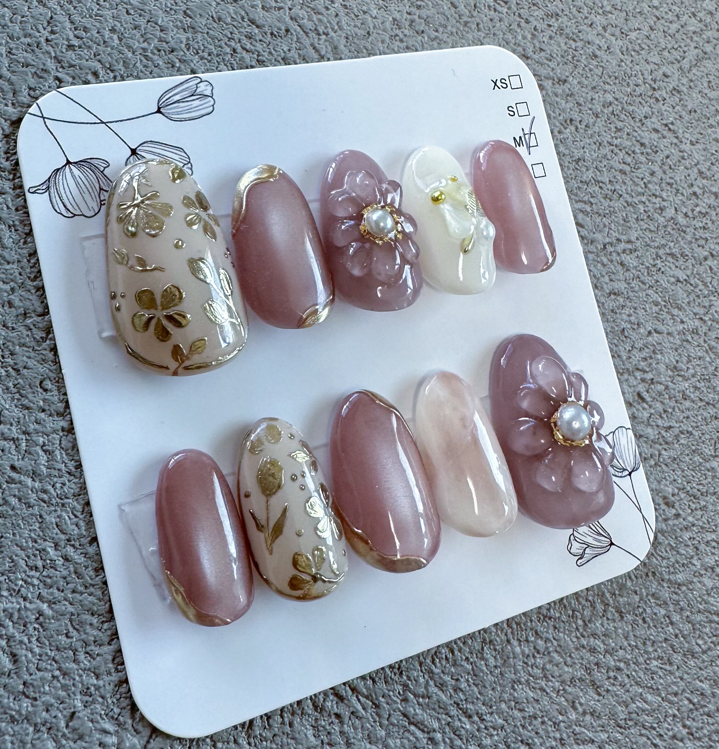 こちらのショップで販売しているネイルチップは、1つ1つ手作業で心を込めてお造りしております。