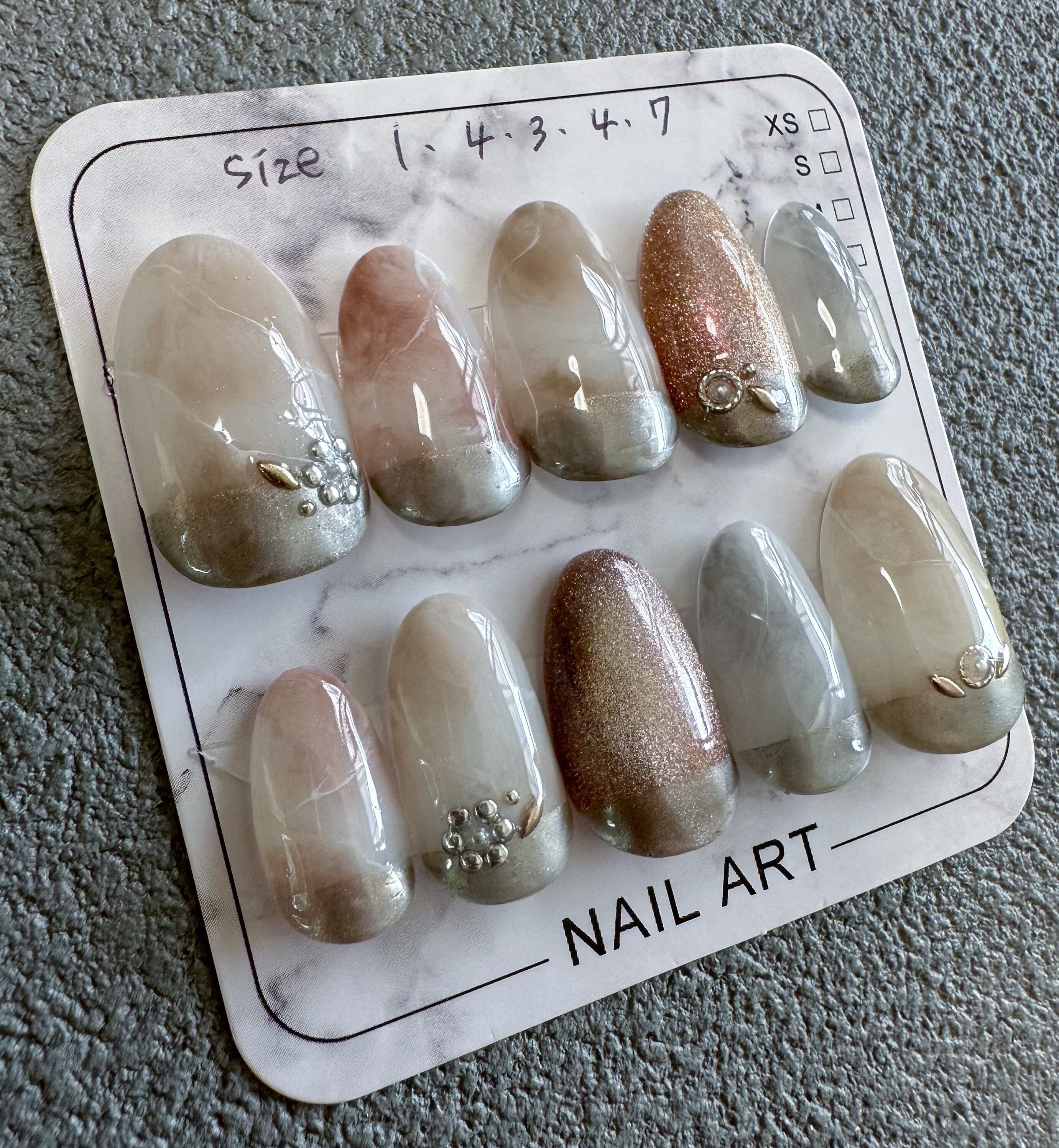 こちらのショップで販売しているネイルチップは、1つ1つ手作業で心を込めてお造りしております。