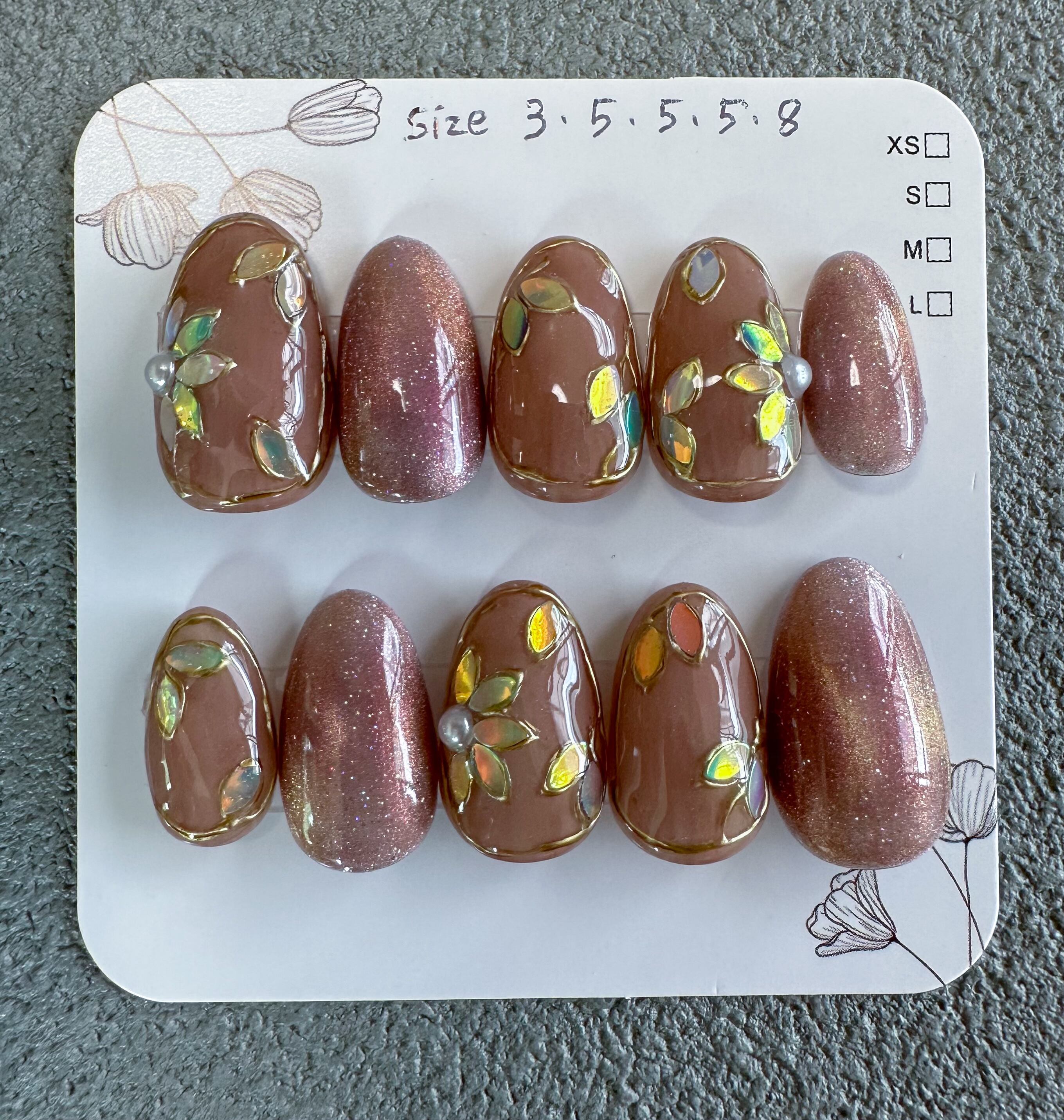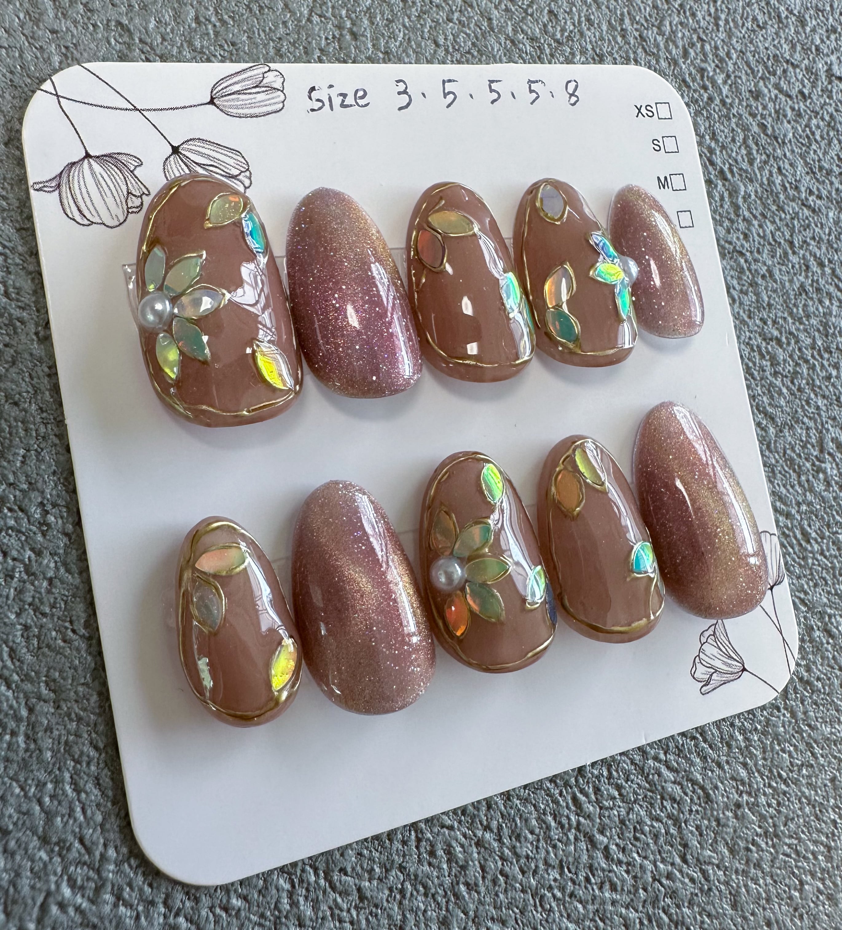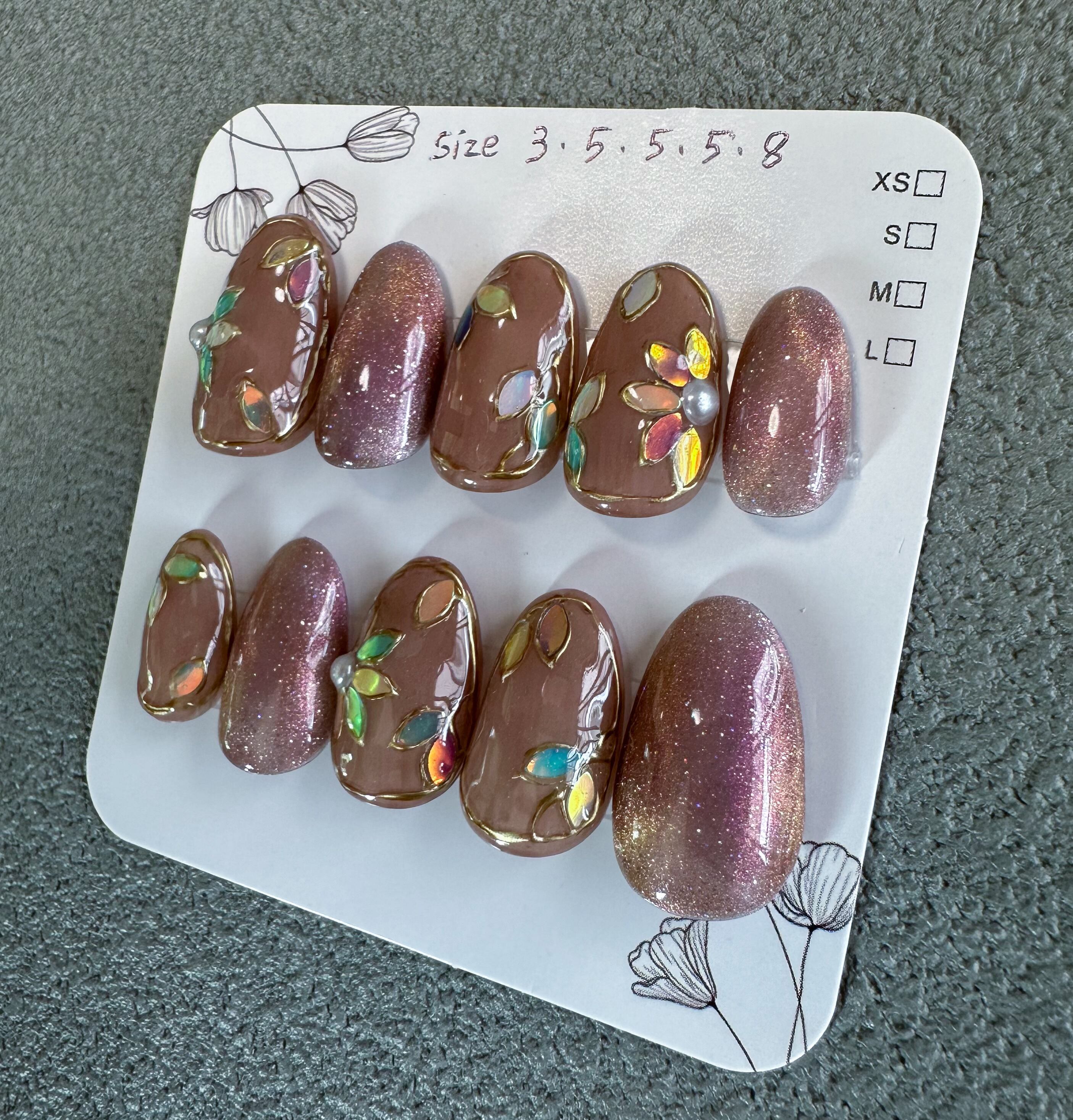 こちらのショップで販売しているネイルチップは、1つ1つ手作業で心を込めてお造りしております。