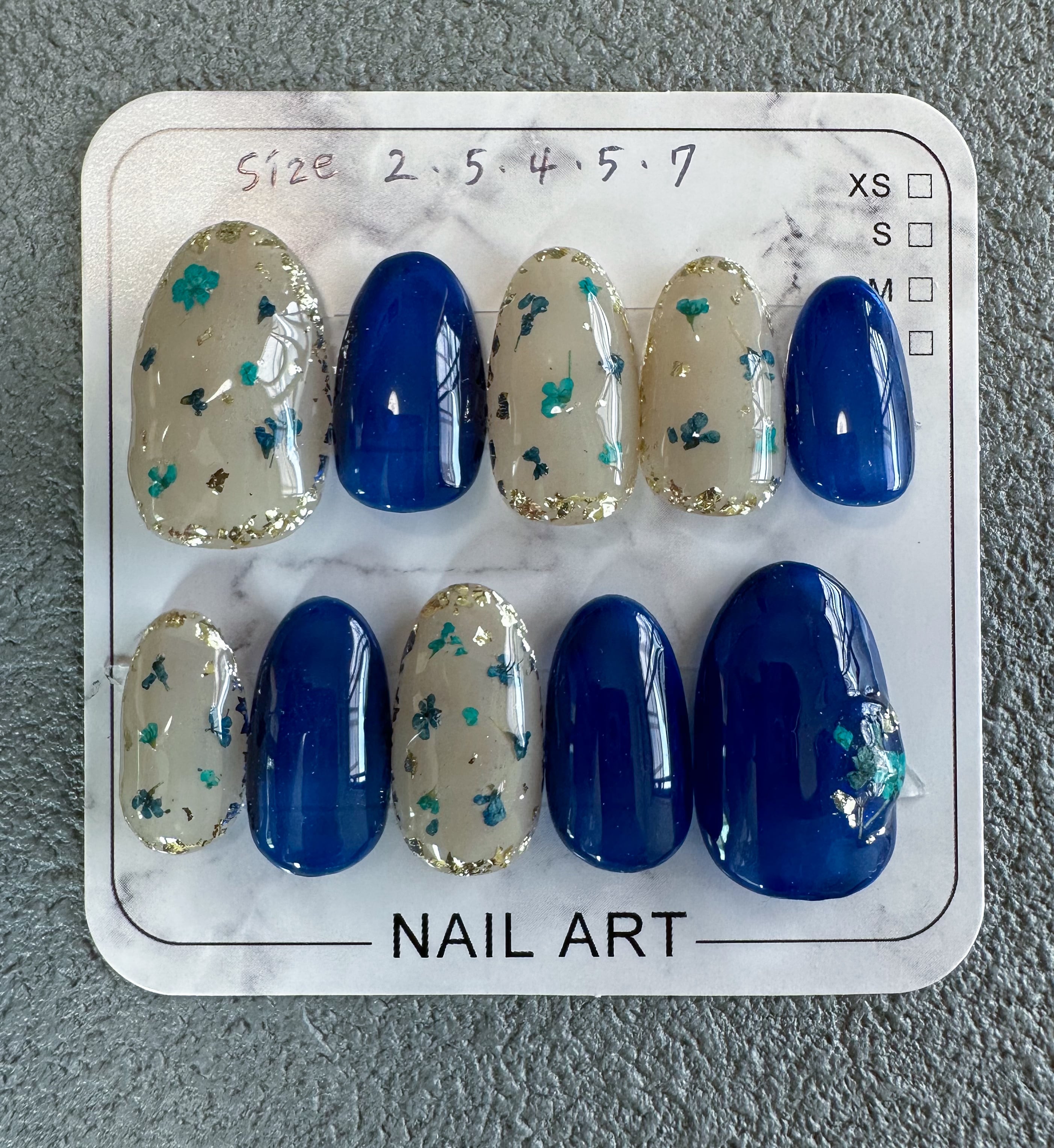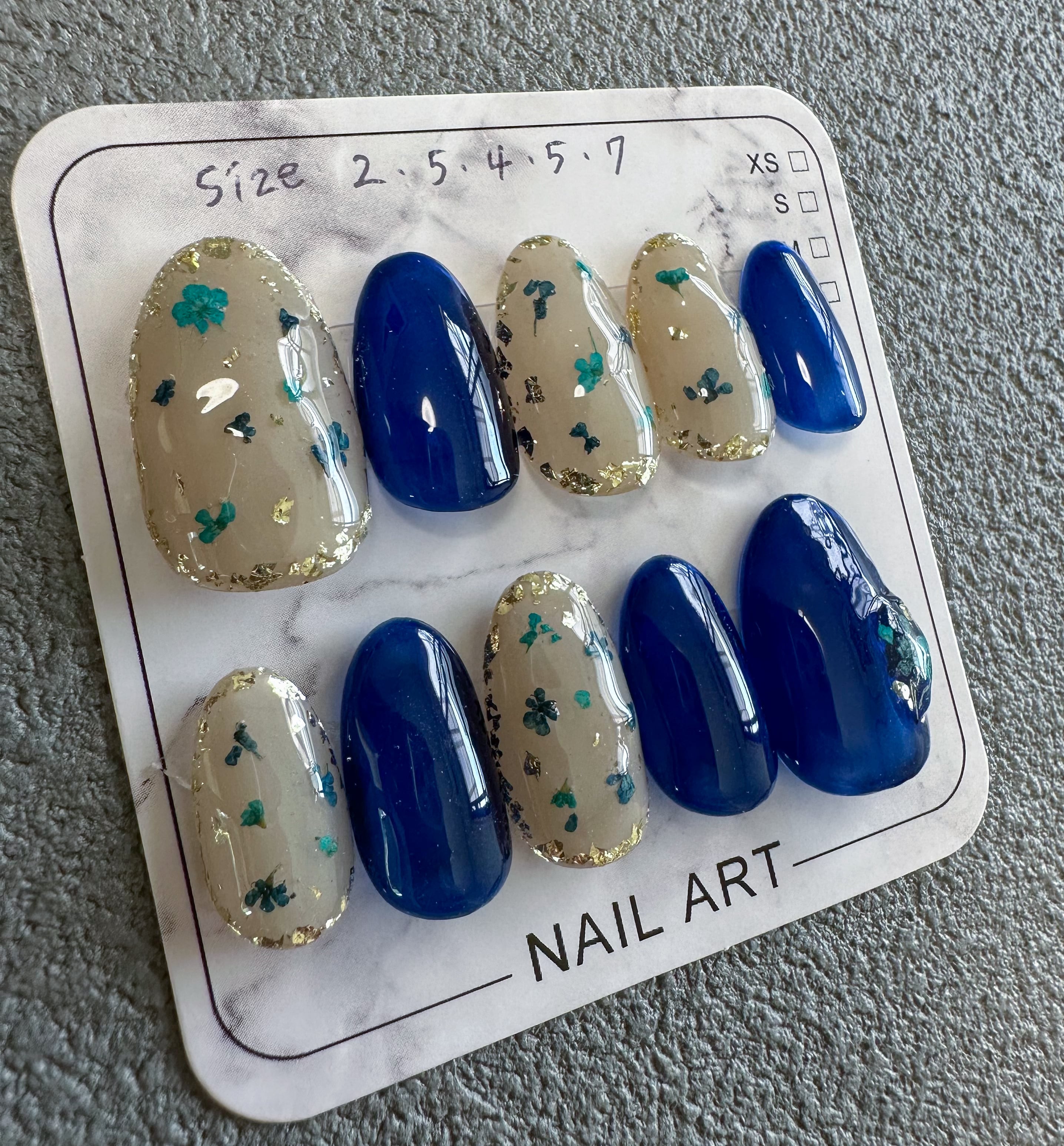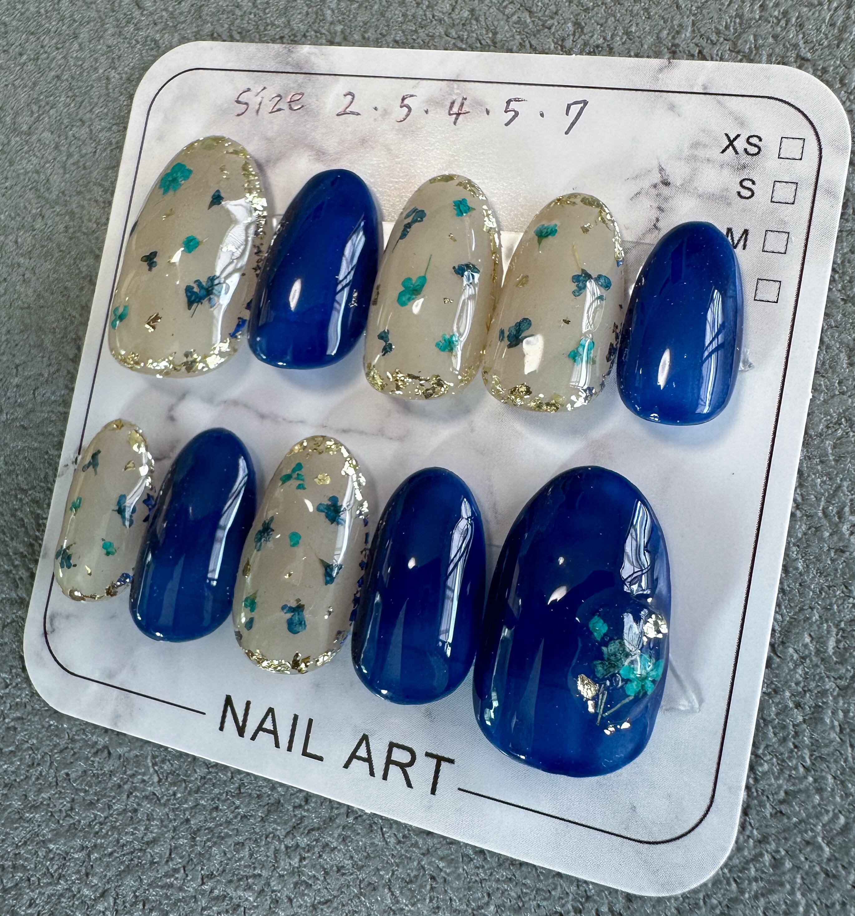 ネイビーと押し花ネイル