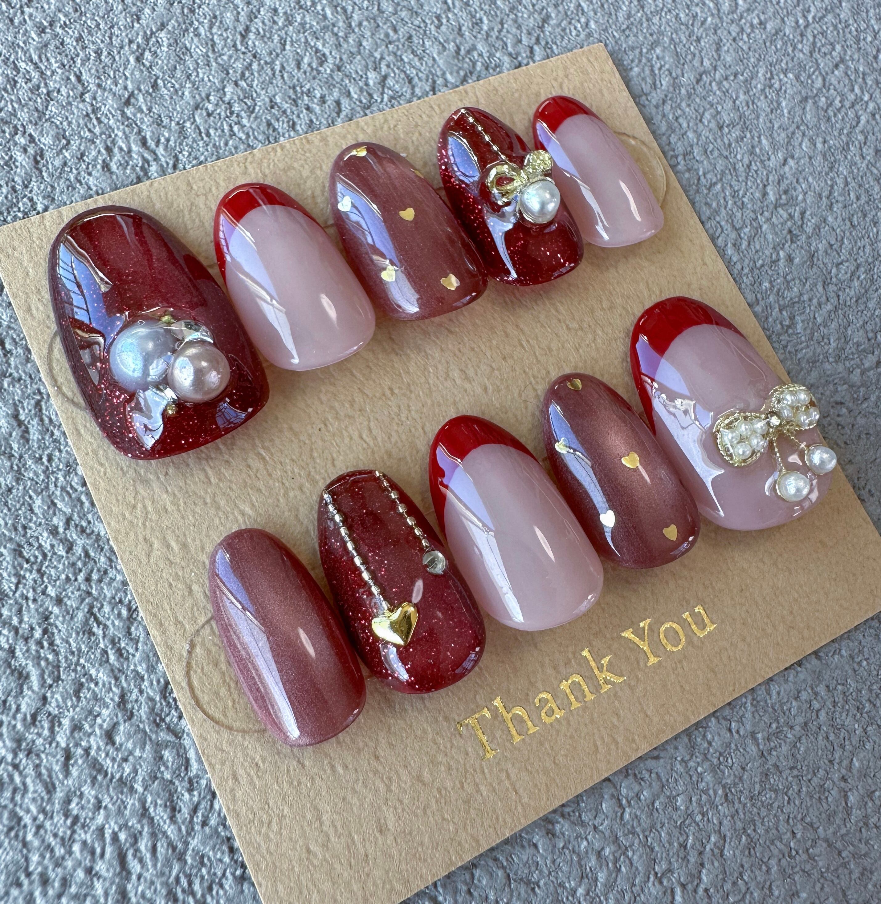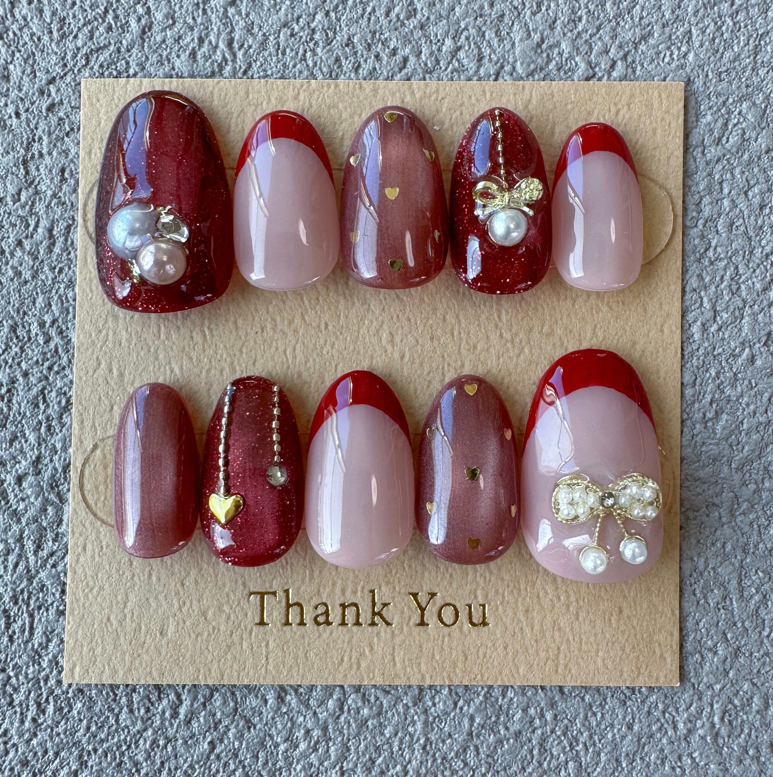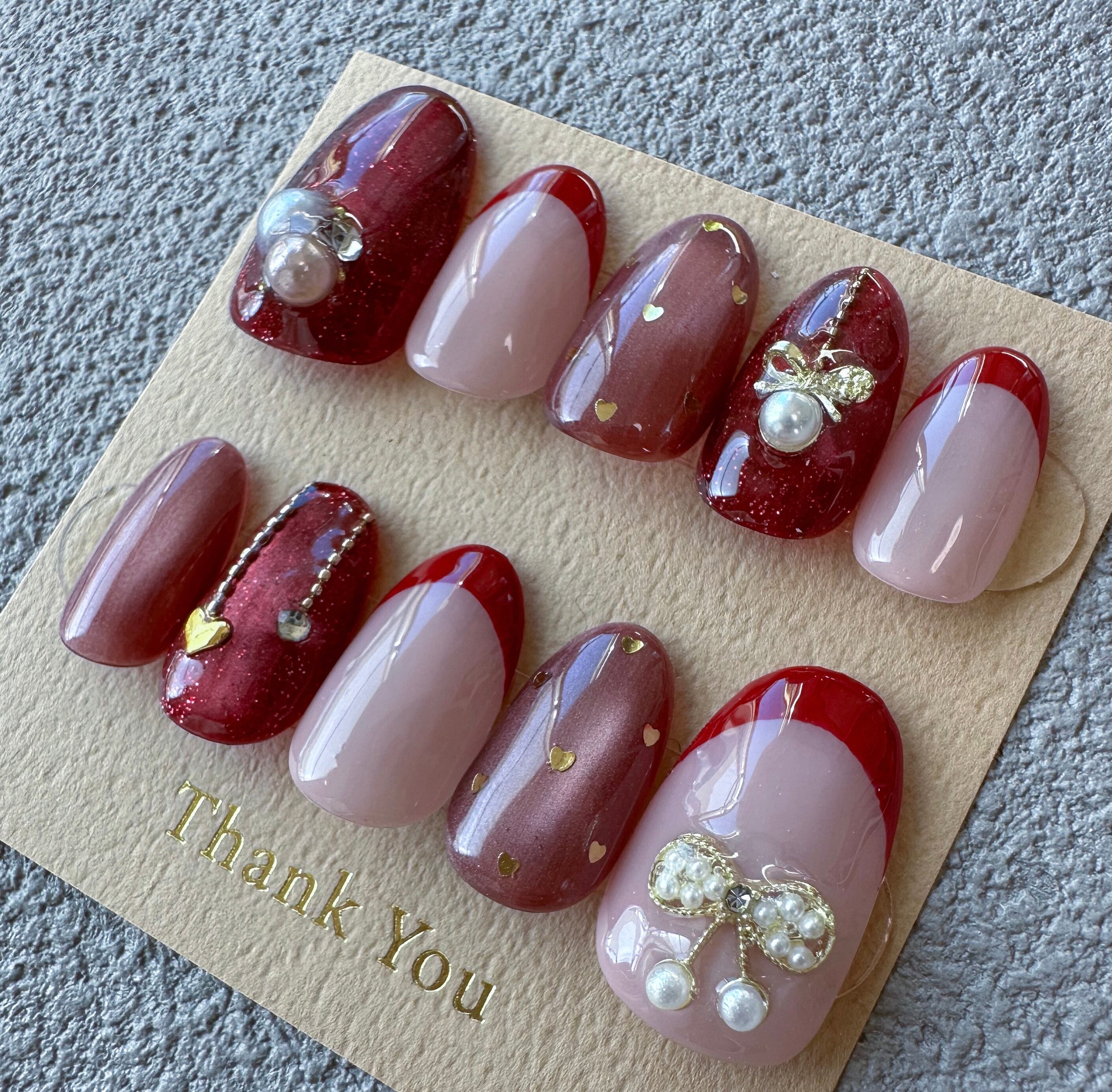 こちらのショップで販売しているネイルチップは、1つ1つ手作業で心を込めてお造りしております。