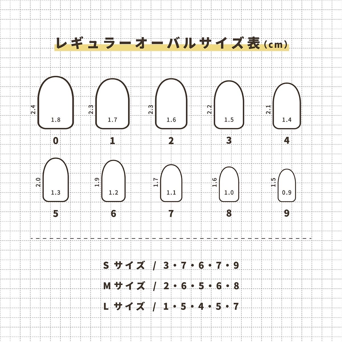 ①[ネイルチップサイズ表]からお爪に合うチップの大きさを測定していただき、S.M.Lサイズ(または特注サイズ)から選択。